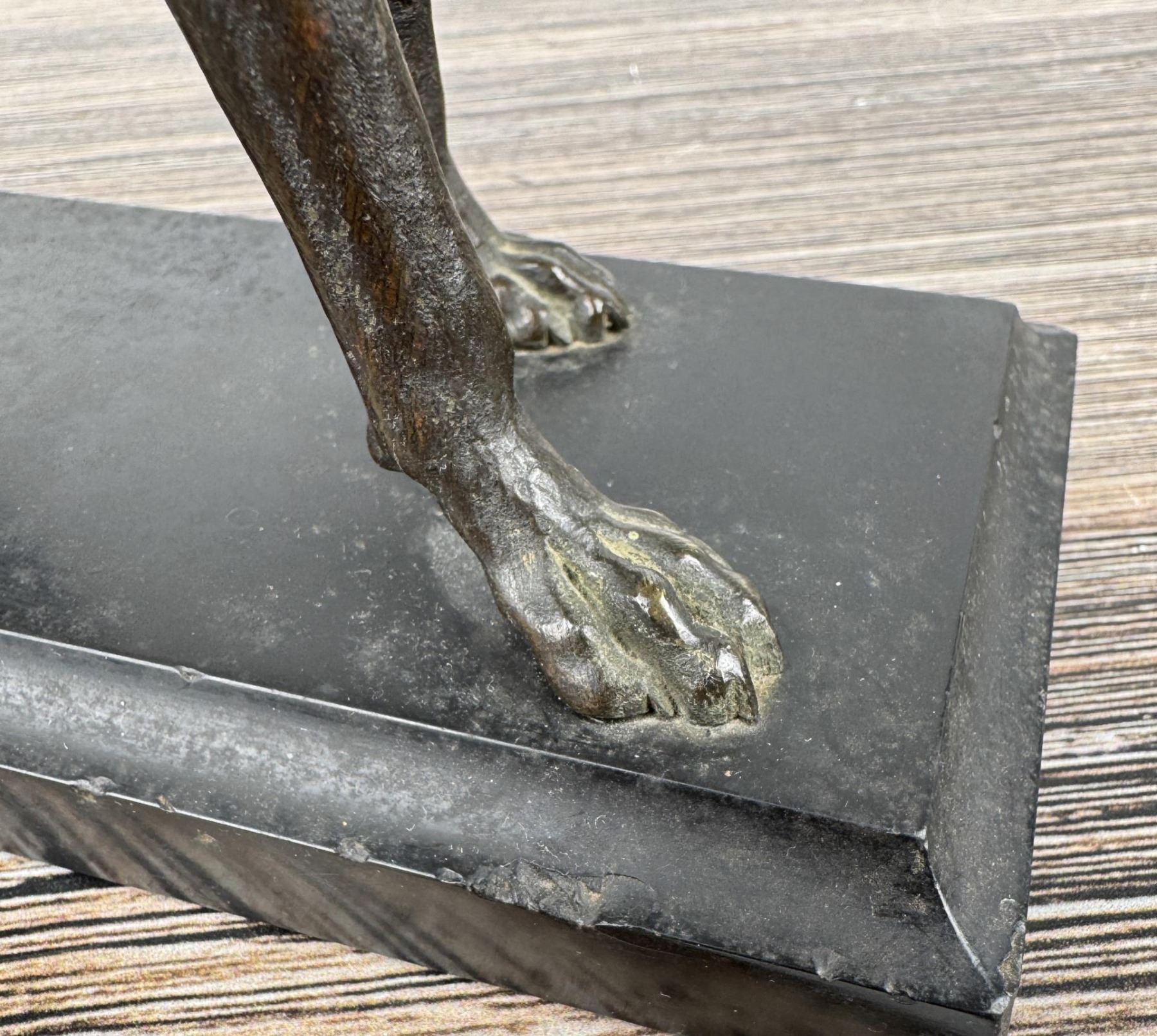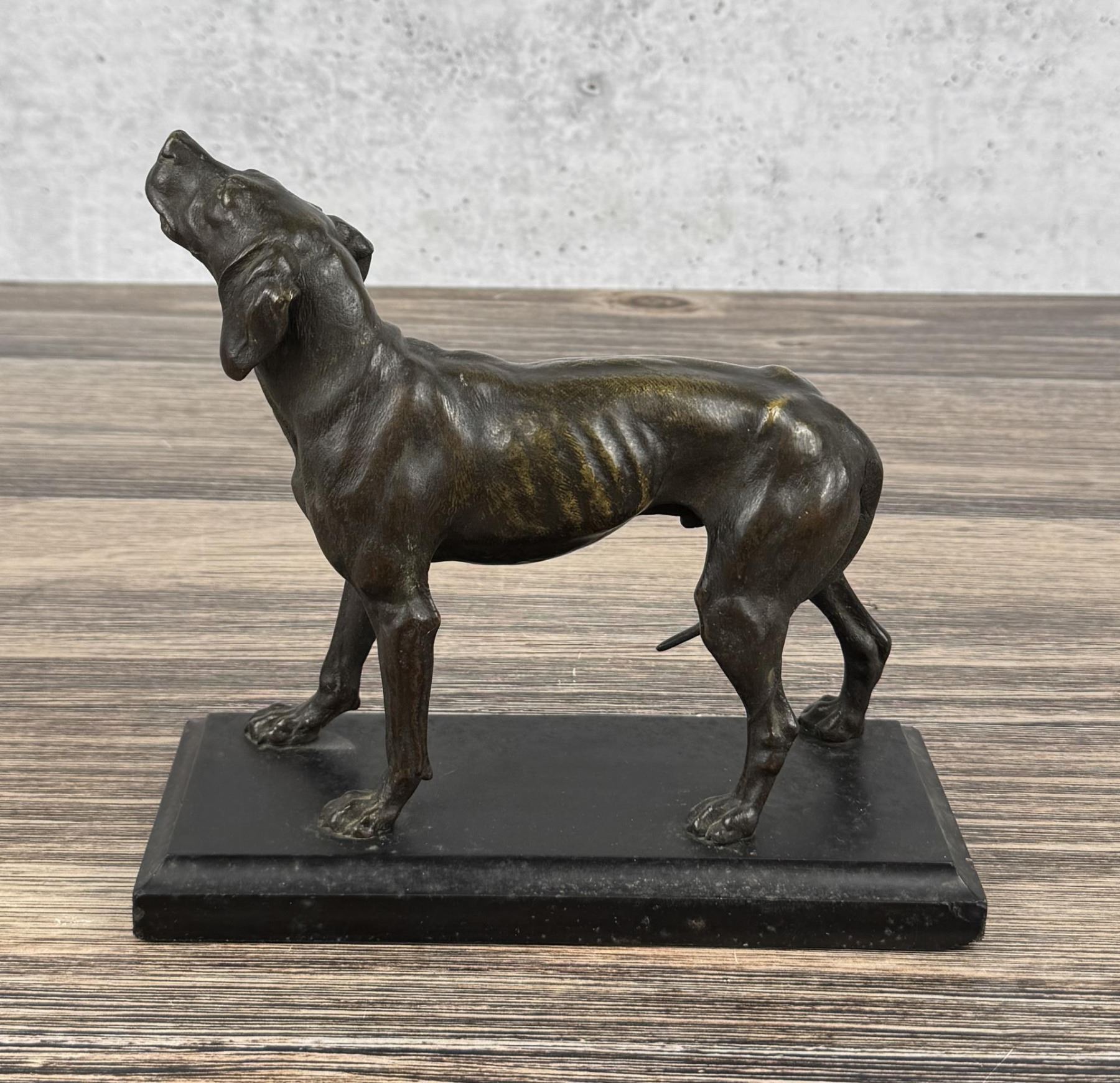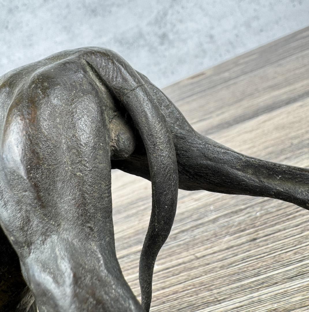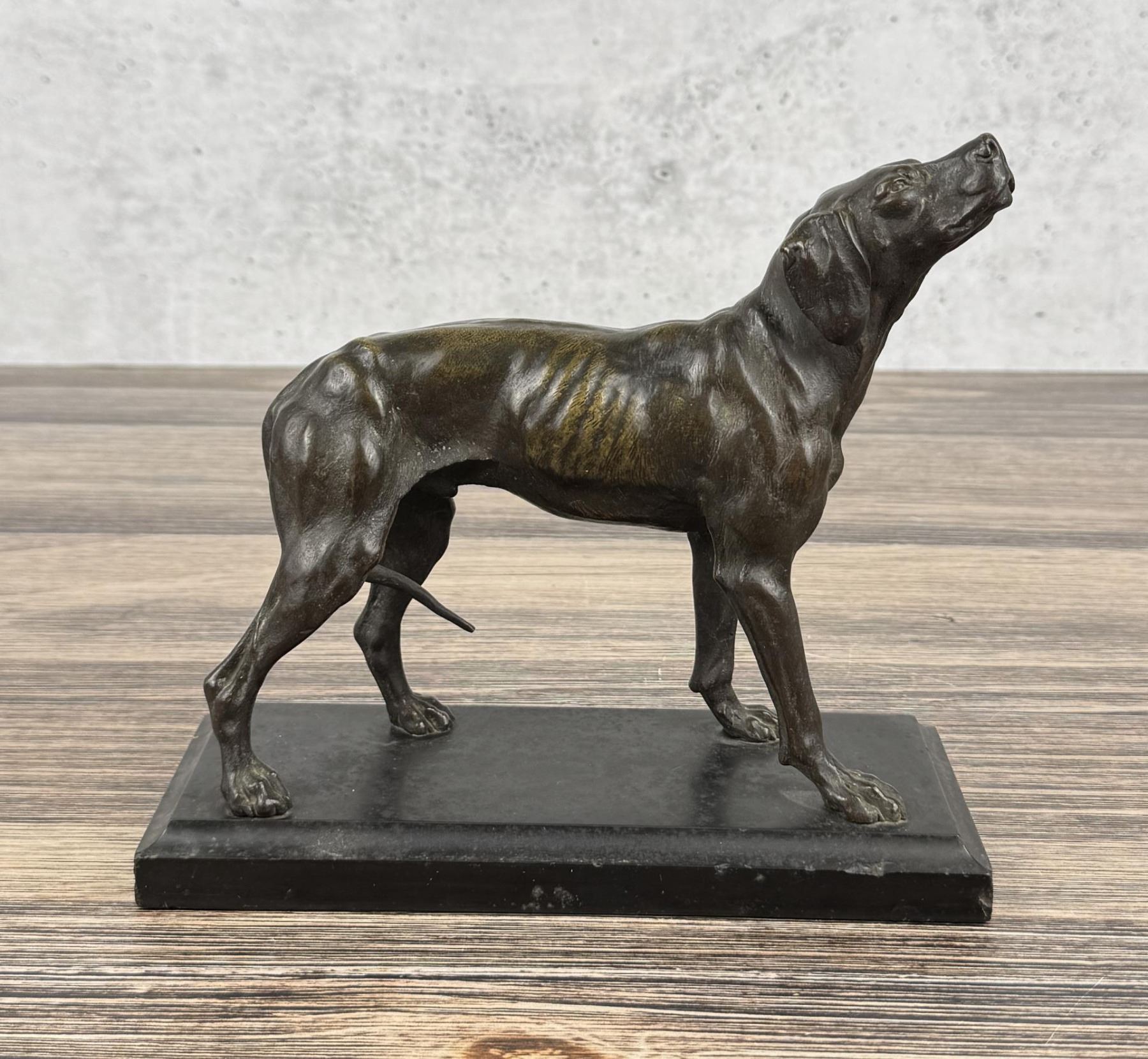 Tail is cracked. 8 1/4" by 7 3/8" by 3 3/8". Ferdinand Pautrot (1832 - 1874) was active/lived in France. Ferdinand Pautrot is known for Hunting dogs, horses and bird sculpture. Ferdinand Pautrot (1832 - 1874) was born in Poitiers, France. Very little is known about this competent French sculptor. His first recorded exhibit was at the Salon in Paris in 1861 with three entries. He continued to exhibit at the Salon until 1870. His works consist of mostly hunting dogs, birds, and a few horses and wild animals. Pautrot's works are highly detailed and accurate in the portrayal of his subjects.