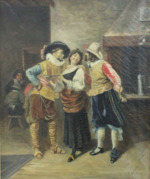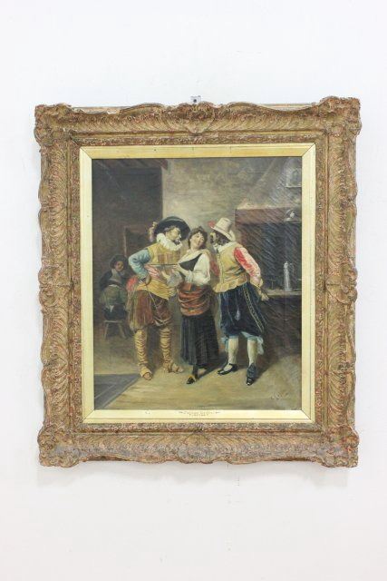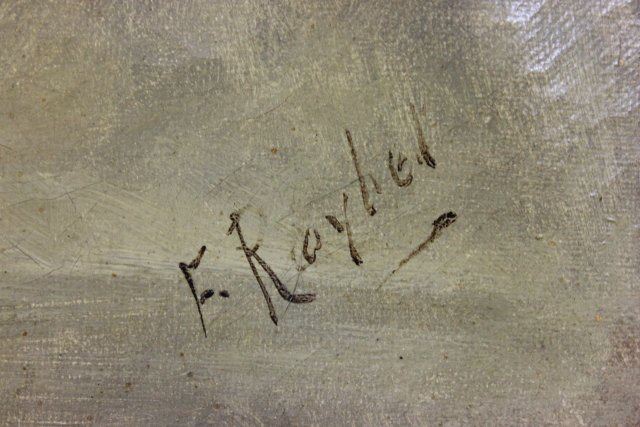 Oil on canvas. Signed lower right. Approx. 24" H x 20" W unframed. Damages to frame.