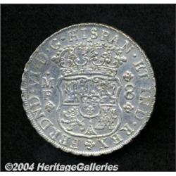<B>Ferdinand V 8 Reales 1750MF,</B></I> KM-104.1, lustrous AU. <BR><BR><B>Important notice:</B> Heritage usually auctions material at the rate of 200-250 lots per hour. On some occasions eBay Live bid software or the Internet may not be able to keep up with the pace of the auction. We recommend placing a realistic absentee bid now as insurance to avoid disappointment. Occasionally the auctioneer may eliminate or reject an eBay Live bid, and the auctioneer may also reopen a lot after the close of the eBay live bidding (usually because we missed an audience bid), and may reject your bid even if it shows you as the winning bidder. By bidding via eBay Live, you agree that Heritage may award the lot to another bidder at its sole discretion under the circumstances described above or any other reasonable circumstances. Since eBay bids are not shown to us until we open the lot on the floor, we treat those bids just like floor bids. In most cases the floor responds before the eBay bid is presented to us, due to Internet lag time, so for consistency we have made it a policy that floor bids are always considered first over tie eBay live bids. Also please note that all Heritage lots purchased through eBay Live carry a 20% Buyer's Premium. Please make sure you read the Terms and Conditions before you bid.