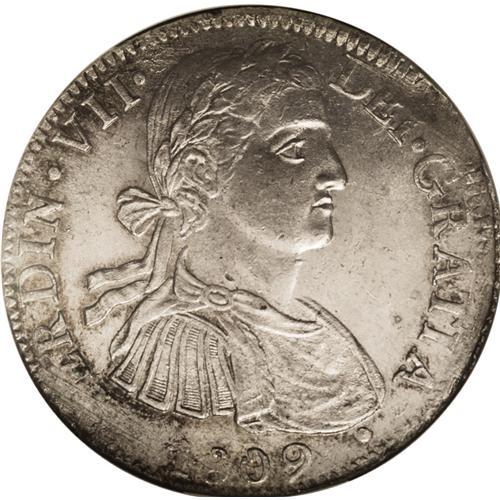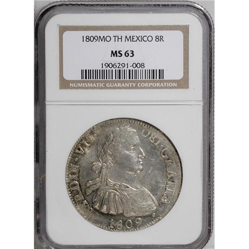 <B>Ferdinand VI 8 Reales 1809-TH, </B></I>KM110, MS63 NGC, light original toning over highly lustrous surfaces, slightly crude at edges, some minor adjustment marks on the reverse edge.