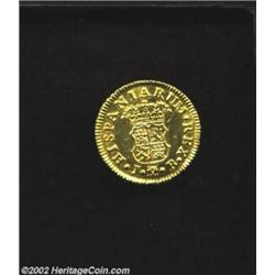 Ferdinand VI Gold 1/2 Escudo 1756M-JB, KM378, AU, cleaned and small scratch on the reverse.Ex: Coin.
