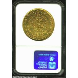 Ferdinand VI Gold 8 Escudos 1752J, KM50, FR16, MS63 NGC, a second and even finer representative of this always impressive 8 Escudos type. Bits of reddish-orange patina cling to the devices of lustrous, fully detailed surfaces. From the Hans A. Land Collection. Important notice: We expect to be auctioning lots at the rate of 200-250 per hour. Sometimes eBay Premier live bid software cannot keep up with that pace, so we strongly recommend that you place a realistic proxy bid now as insurance to avoid disappointment. Also please note that all Heritage/CAA lots purchased through eBay Premier carry a 20% Buyer's Premium. Please make sure you read the Terms and Conditions.