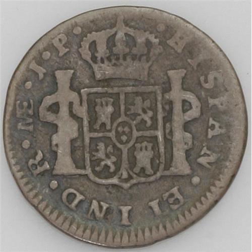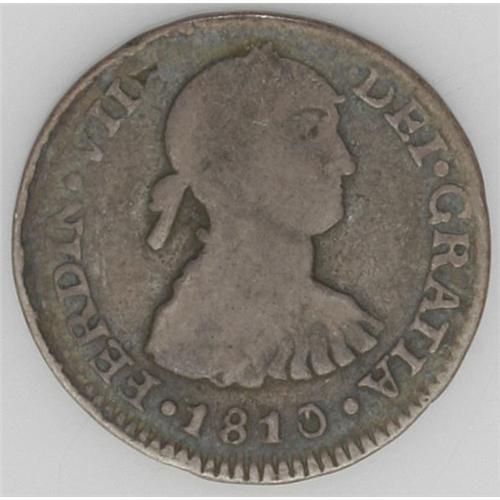 <B>Ferdinand VII 1/2 Real 1810-JP, </B></I>KM103.2, imaginary bust, toned VG-F, clear details, appears to be an overdate. Very scarce little type.