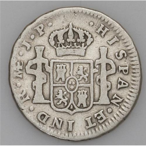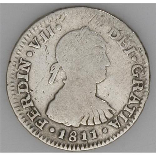 <B>Ferdinand VII 1/2 Real 1811-JP, </B></I>KM103.2, imaginary bust, nice nearly Fine, evenly worn, extremely rare date with about five pieces reported.