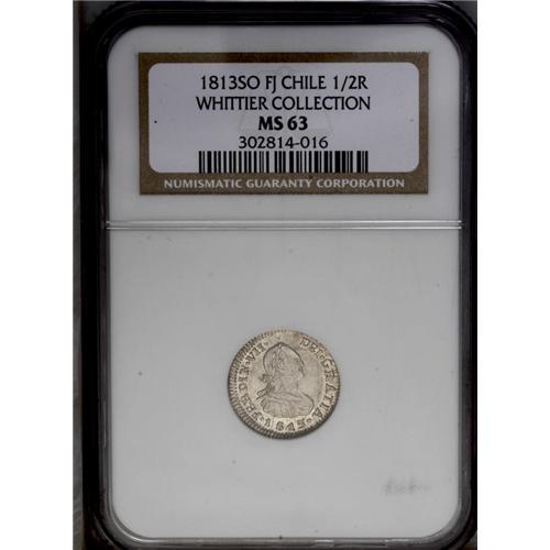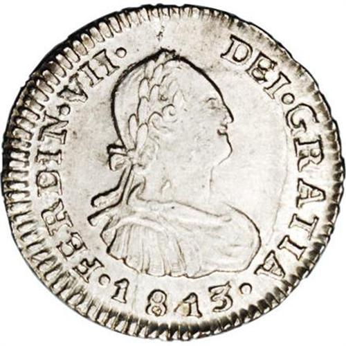 Ferdinand VII 1/2 Real 1813FJ-So, KM64, MS63 NGC, bust Ferdinand VII 1/2 Real 1813FJ-So,