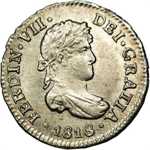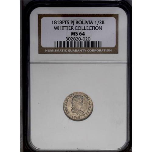 Ferdinand VII 1/2 Real 1818-PJ, KM90, MS64 NGC, needle Ferdinand VII 1/2 Real 1818-PJ,