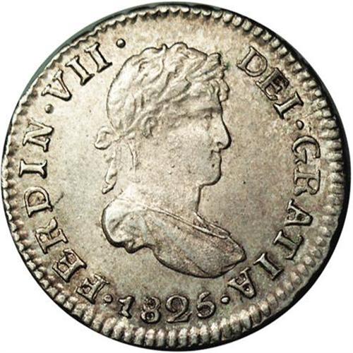 Ferdinand VII 1/2 Real 1825-JL, KM90, MS63 NGC, strong Ferdinand VII 1/2 Real 1825-JL,