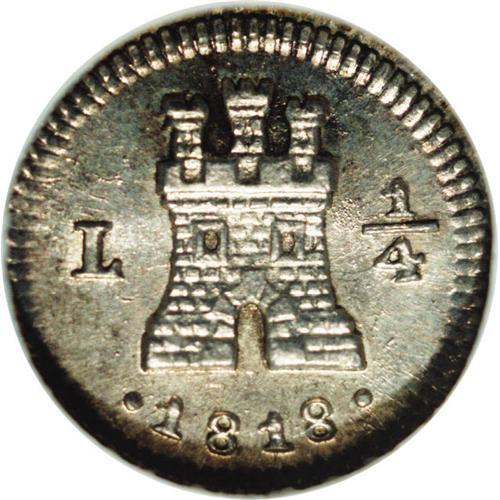 Ferdinand VII 1/4 Real 1818-L, KM108, MS66 NGC, lightly Ferdinand VII 1/4 Real 1818-L,