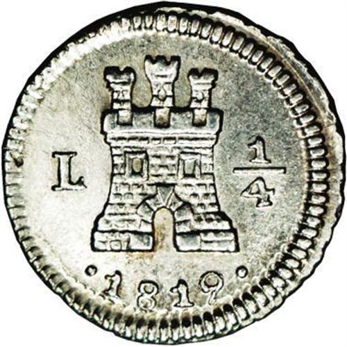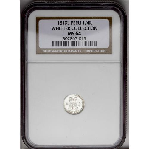 <B>Ferdinand VII 1/4 Real 1819-L, </B></I>KM108, MS64 NGC, very sharply struck with full white mint brilliance.
