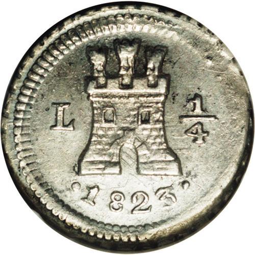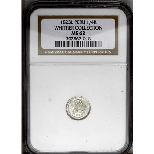 Ferdinand VII 1/4 Real 1823-L, KM108, MS62 NGC, slightl Ferdinand VII 1/4 Real 1823-L,