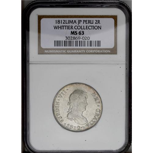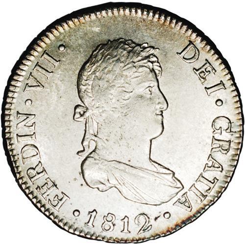 Ferdinand VII 2 Reales 1812-JP, KM115.1, MS63 NGC, full Ferdinand VII 2 Reales 1812-JP,
