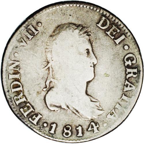 Ferdinand VII 2 Reales 1814FJ-So, KM79, VG10 NGC, an at Ferdinand VII 2 Reales 1814FJ-So,