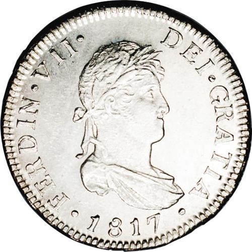 Ferdinand VII 2 Reales 1817FJ-So, KM79, MS65 NGC Proofl Ferdinand VII 2 Reales 1817FJ-So,