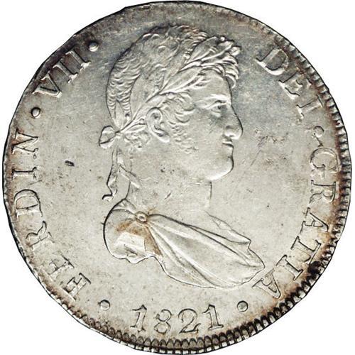 Ferdinand VII 8 Reales 1821-JP, KM117.1, MS61 NGC, well Ferdinand VII 8 Reales 1821-JP,