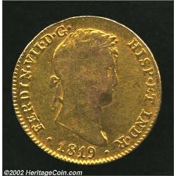 Ferdinand VII Gold 4 Escudos 1819M-GJ, KM484, Fine, weak obverse and may be ex: jewelry. Important n