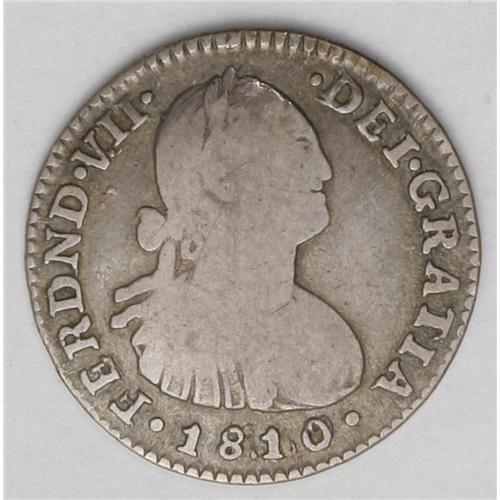 <B>Ferdinand VII Real 1810/09NR-JF, </B></I>KM68.1, toned Fine, very obvious overdate.