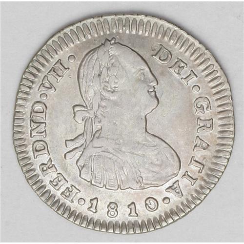 <B>Ferdinand VII Real 1810P-JF, </B></I>KM68.2, VF-XF with bold details including full PLUS ULTRA, lightly cleaned long ago and now very attractive.