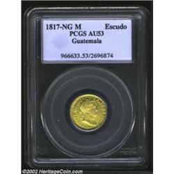 Ferdinand VII gold 1 escudo 1817 NG-M, Laureate head right with date below, Crowned arms with value and mintmark, F-25, KM-74, AU53 PCGS. A very scarce one-year type. Important notice: We expect to be auctioning lots at the rate of 200-250 per hour. Sometimes eBay Premier live bid software cannot keep up with that pace, so we strongly recommend that you place a realistic proxy bid now as insurance to avoid disappointment. Also please note that all Heritage/CAA lots purchased through eBay Premier carry a 20% Buyer's Premium. Please make sure you read the Terms and Conditions.