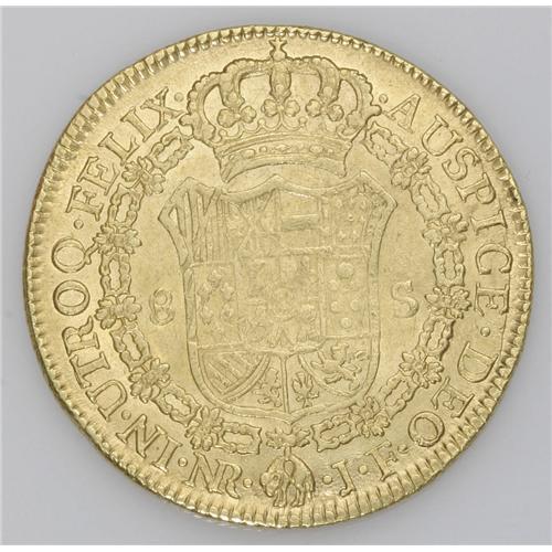 <B>Ferdinand VII gold 8 Escudos 1814-NR-JF, </B></I>KM66.1, choice XF-AU, lustrous and very attractive, strong details and no adjustment marks.