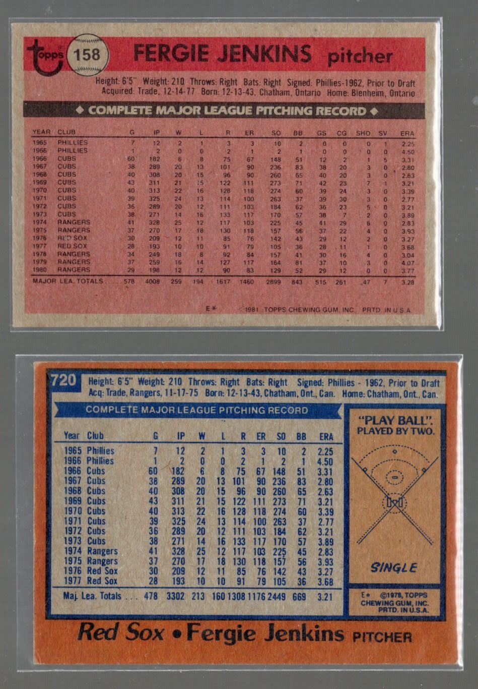 Fergie Jenkins 1981 Topps Card number 158 & 1978 Topps Card number 720