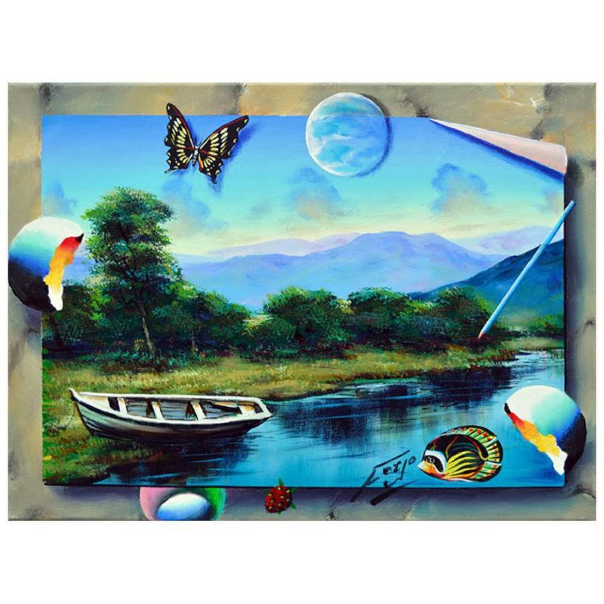 Ferjo, "A View of the Lake" Original Painting on Canvas, Hand Signed with Letter of Authenticity.