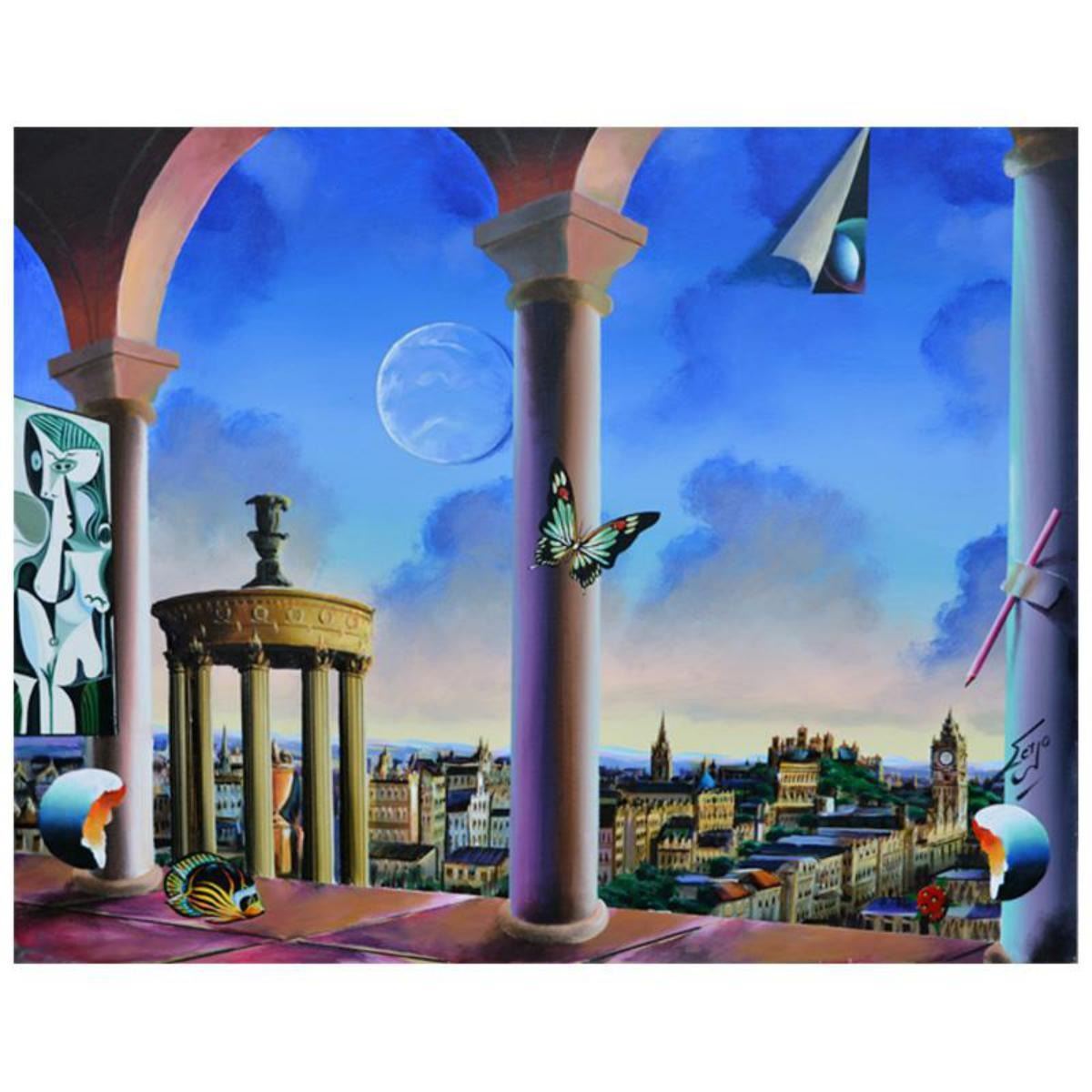 Ferjo, "City Overlook" Original Painting on Canvas, Hand Signed with Letter of Authenticity.