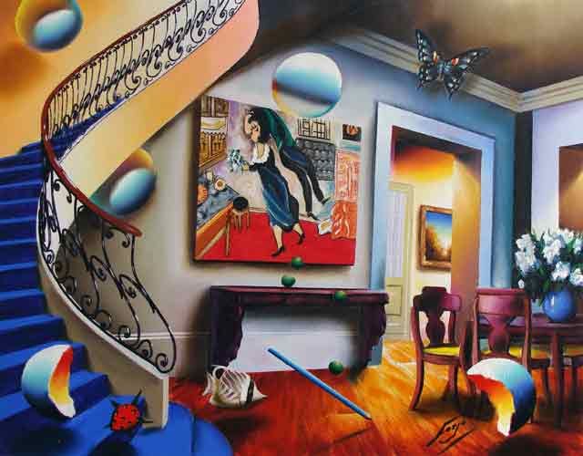 A beautifully crafted surrealist work featuring the art of Marc Chagall. 24"x30" giclee on canvas, signed and numbered in an edition of 350. Can be framed like a painting without glass. Domestic shipping $75. International shipping cost depends upon location.