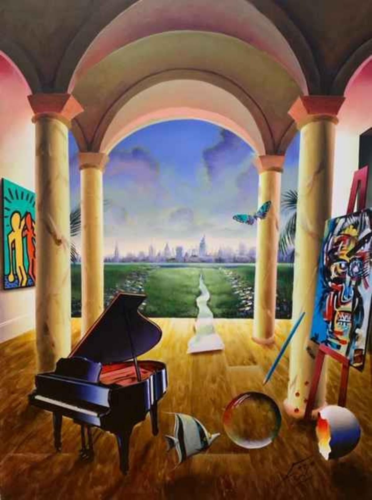 Ferjo "Distant City" Hand Signed Original Oil on Stretched Canvas Dimensions: 40 x 30 Inches