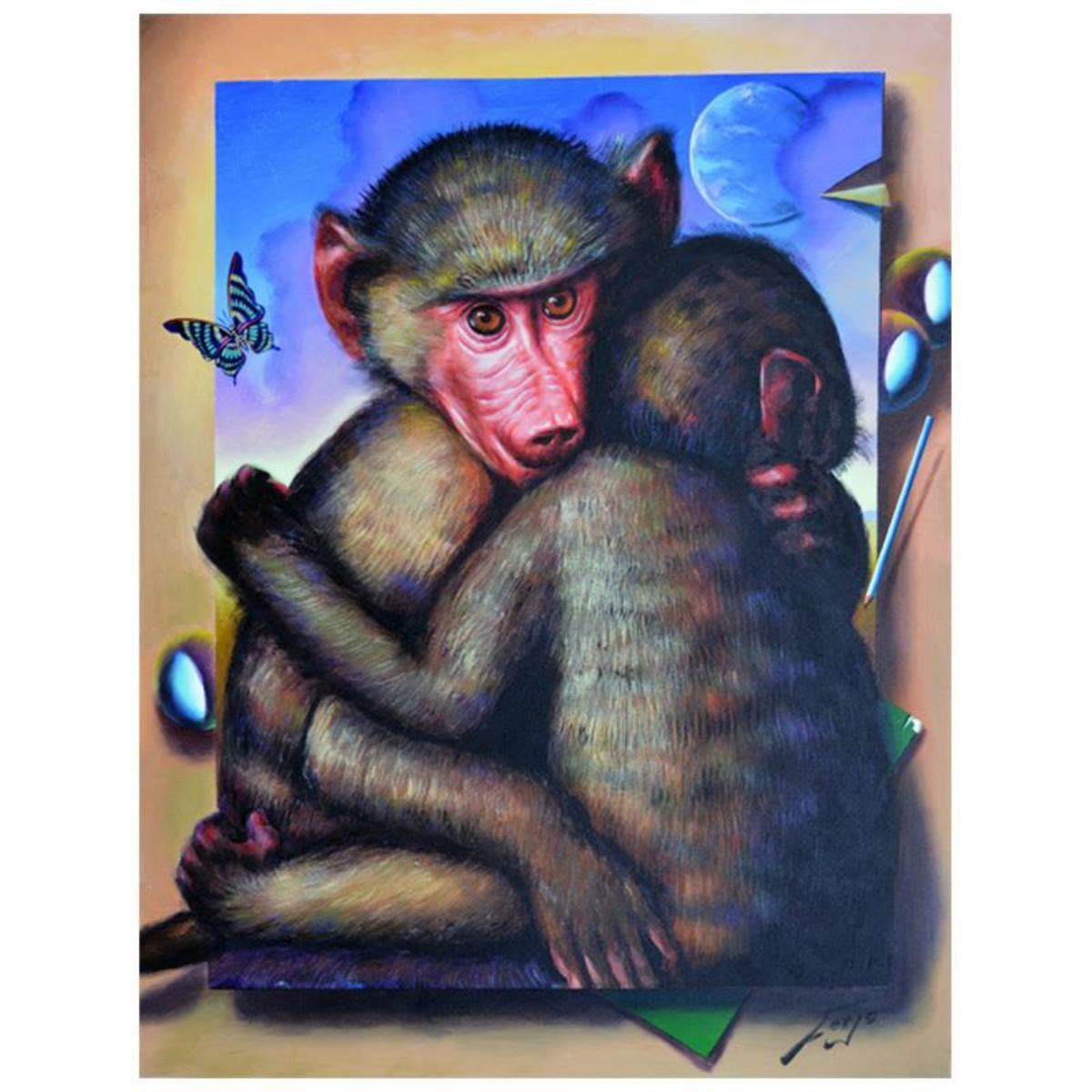 Ferjo, "Hug Me Tight" Original Painting on Canvas, Hand Signed with Letter of Authenticity.