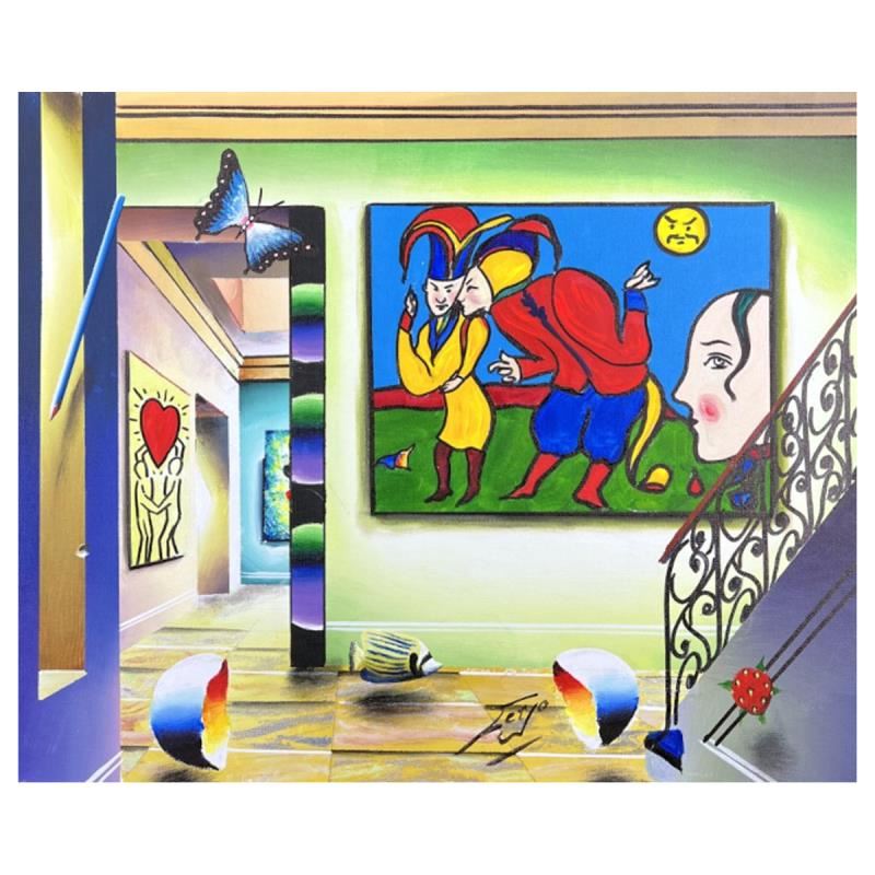 "Keeping Secrets" is an original painting, oil on stretched canvas, by Ferjo. Hand signed by the artist, this piece comes with a letter of authenticity. Measures approximately 24" x 20" (image).