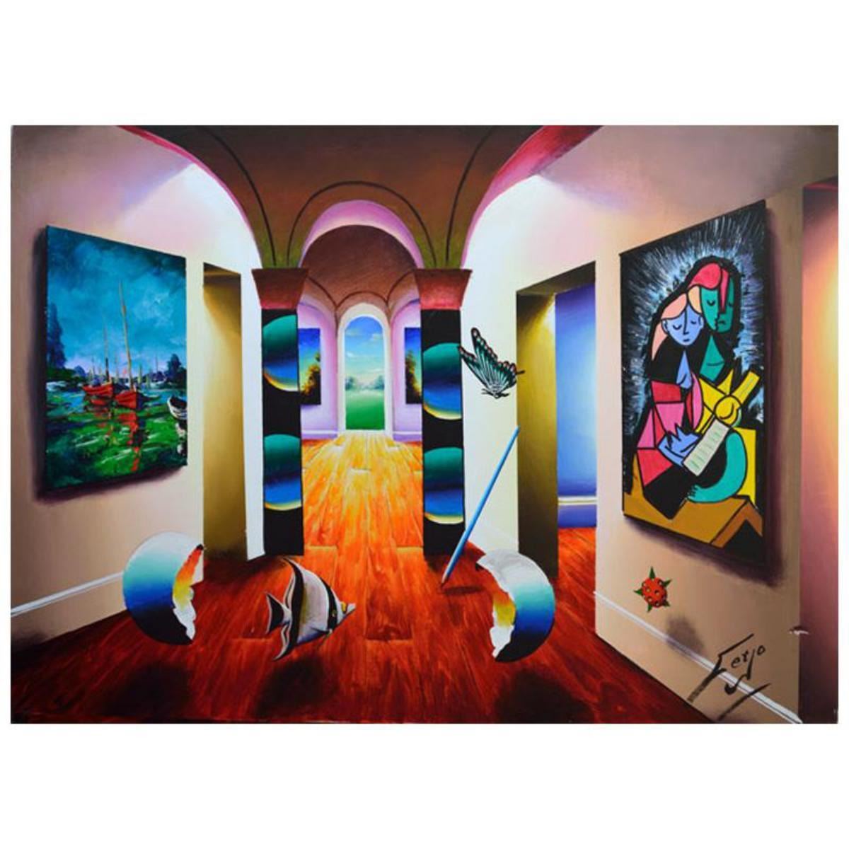 Ferjo, "Love and the Sea" Original Painting on Canvas, Hand Signed with Letter of Authenticity.