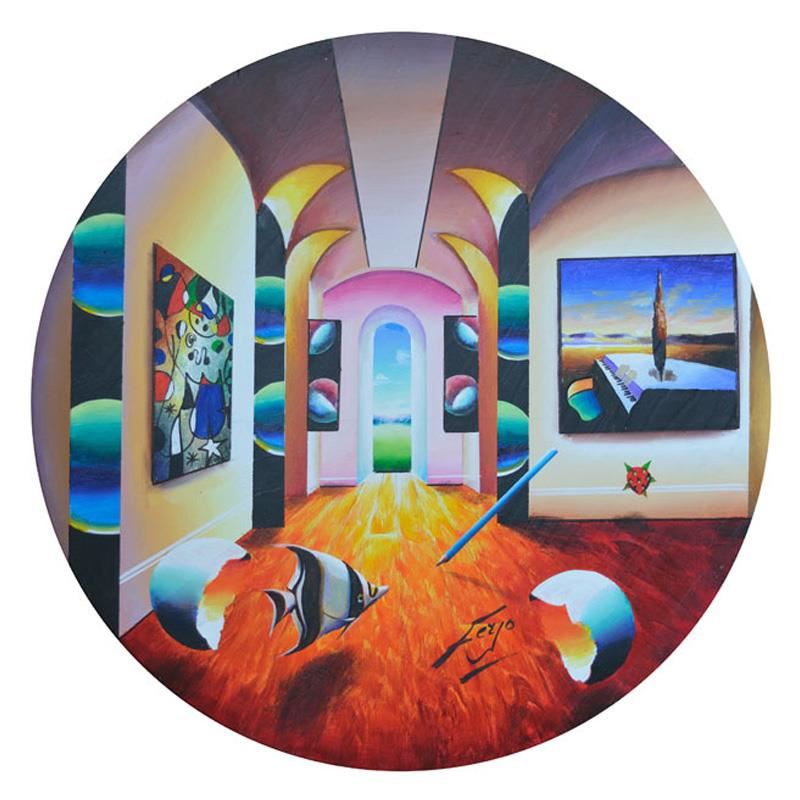 "Lovely Masters in the Sun" is an original painting, oil on wood, by Ferjo. Hand signed by the artist, this piece comes with a letter of authenticity. Measures approx. 24" diameter (image).