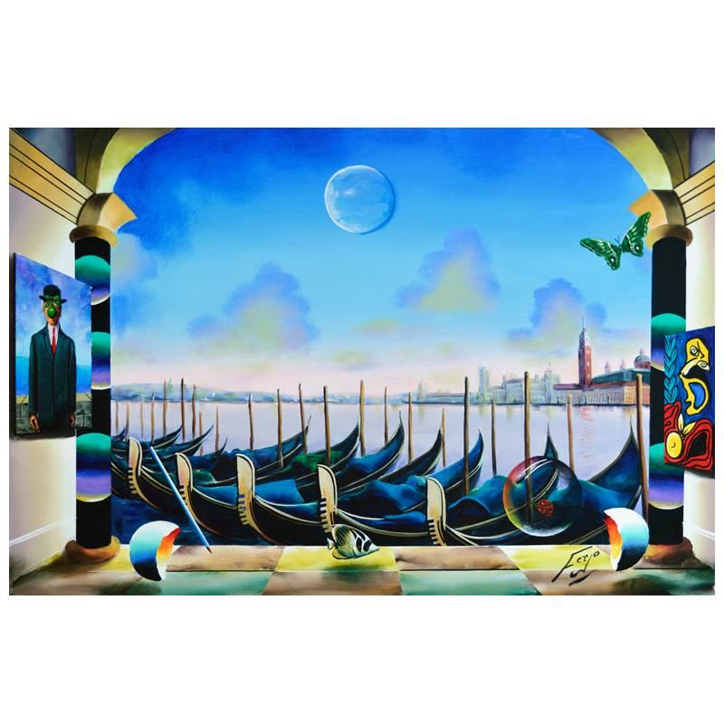 Ferjo, "Masters Overlooking" Original Painting on Canvas, Hand Signed with Lette