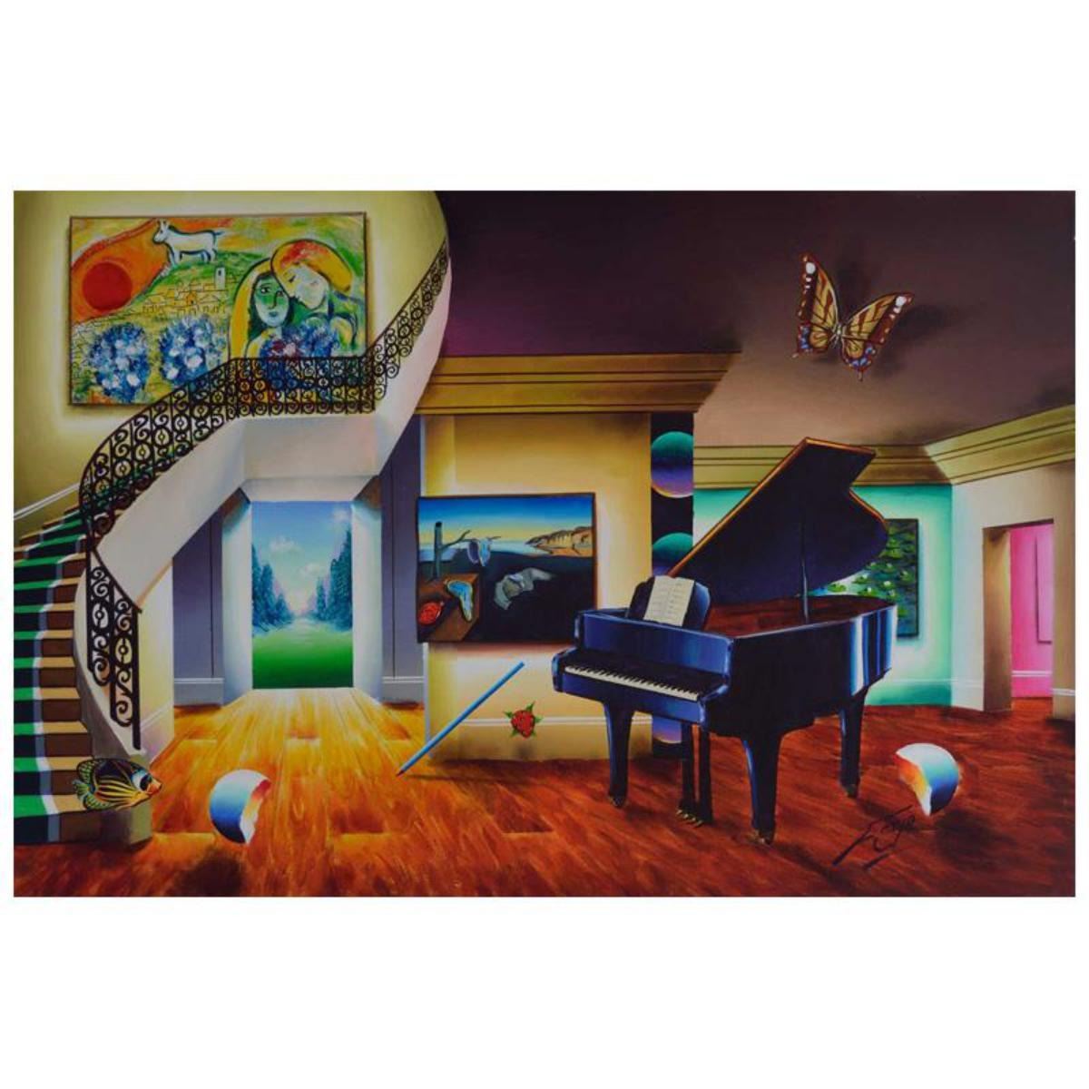 "Music Composition For Lovers" is an original painting, oil on stretched canvas, by Ferjo. Hand signed by the artist, this piece comes with a letter of authenticity. Measures approx. 24" x 36" (image). Reference #: 242521
