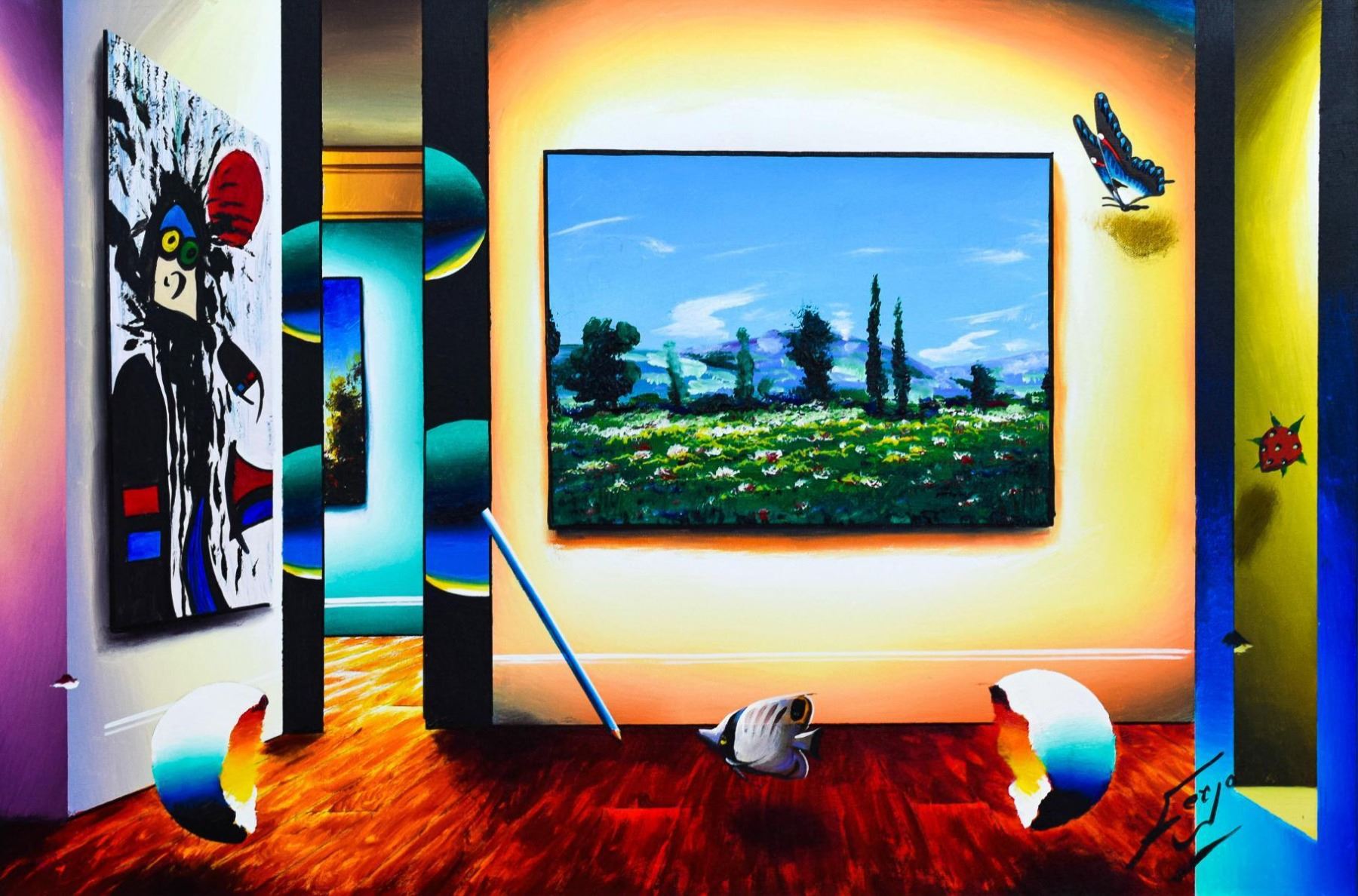 Artist: Ferjo. Medium: Original Oil on Canvas. Title: Bold Landscape. Size (Unframed): 24" x 36". Size (Framed): 30" x 42". Certificate of Authenticity: Is included. Additional: Custom framed. Reference# 14622.