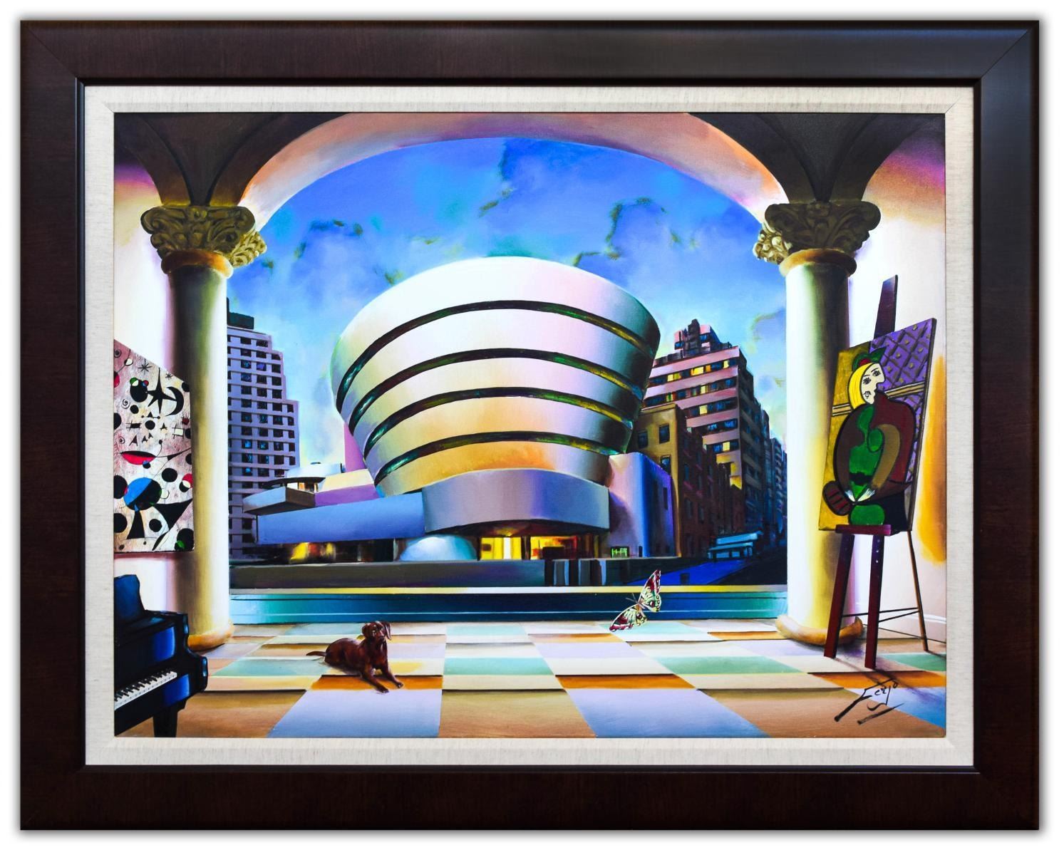 Artist: Ferjo. Medium: Original Oil on Canvas. Title: Guggenheim Ny. Size (Unframed): 30" x 40". Size (Framed): 38" x 48". Certificate of Authenticity: Is included. Additional: Custom framed. Reference# 14608.