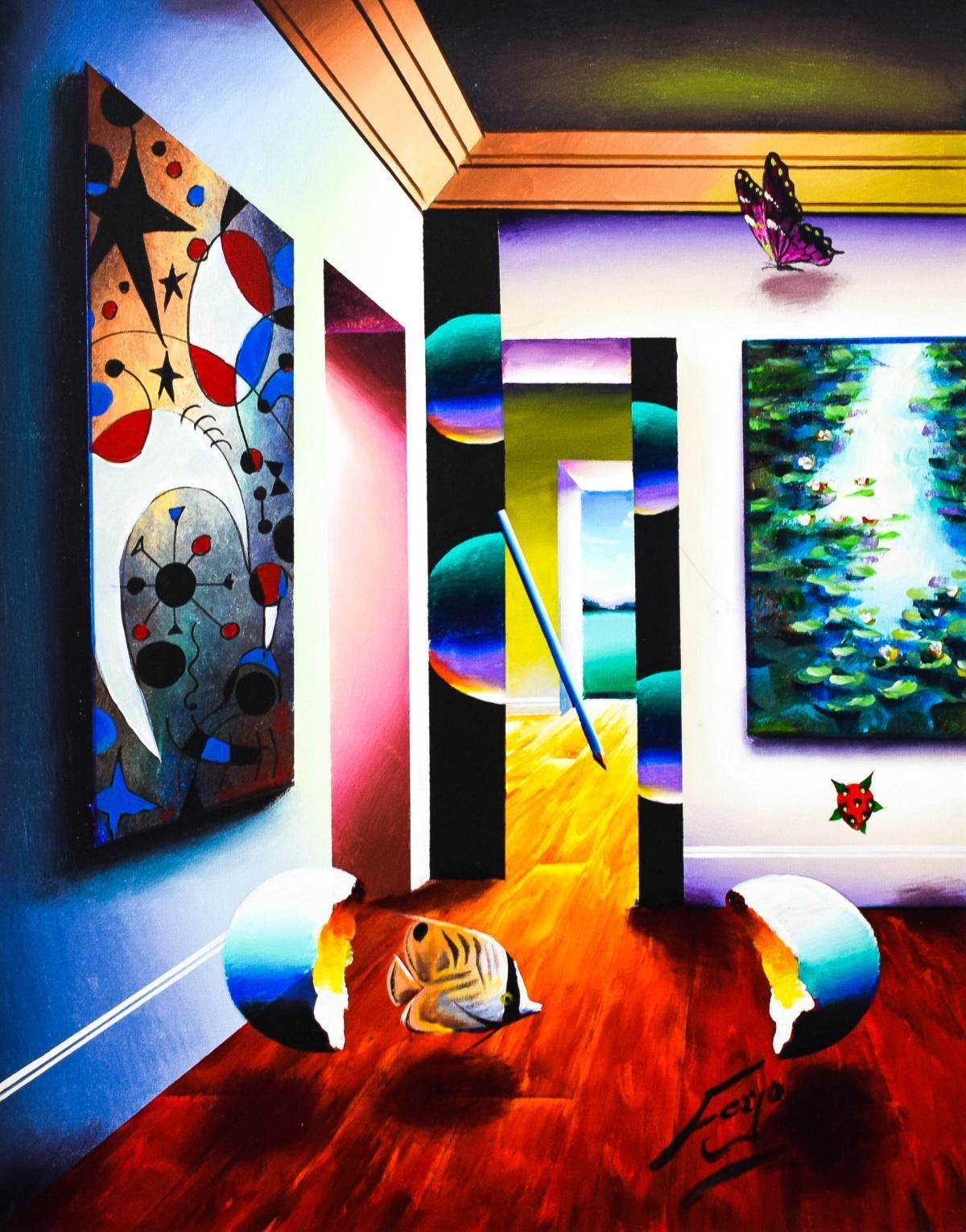 Artist: Ferjo. Medium: Original Oil on Canvas. Title: Interior Miro Monet. Size (Unframed): 28" x 22". Size (Framed): 32.5" x 26.5". Certificate of Authenticity: Is included. Additional: Custom framed. Reference# 15967.