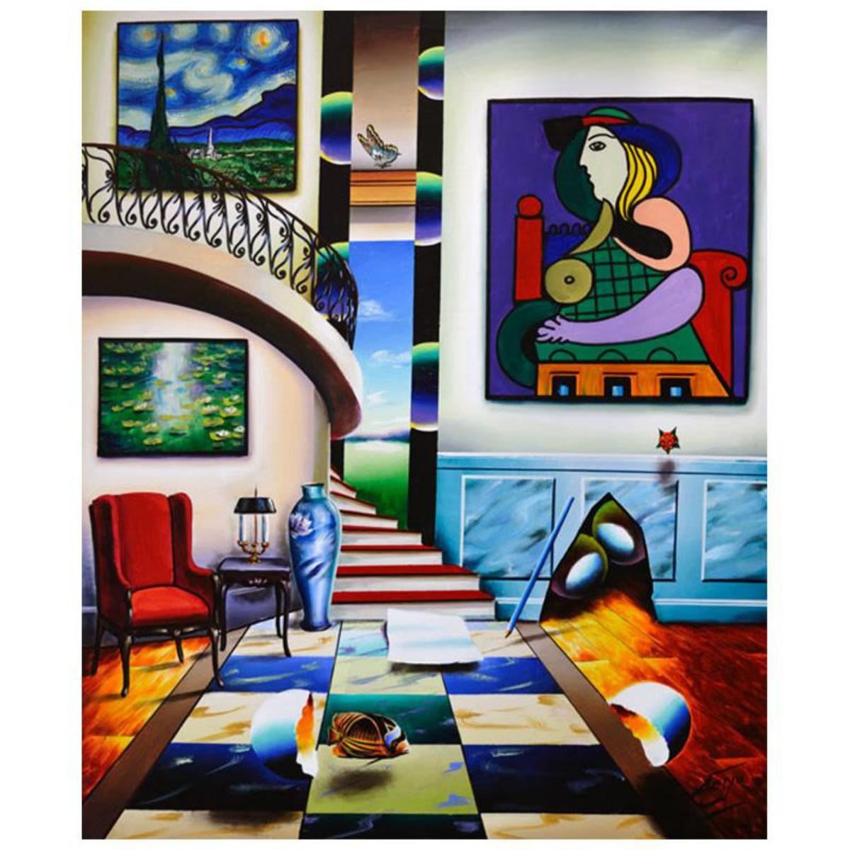 Ferjo, "Reading Room" Original Painting on Canvas, Hand Signed with Letter of Authenticity.