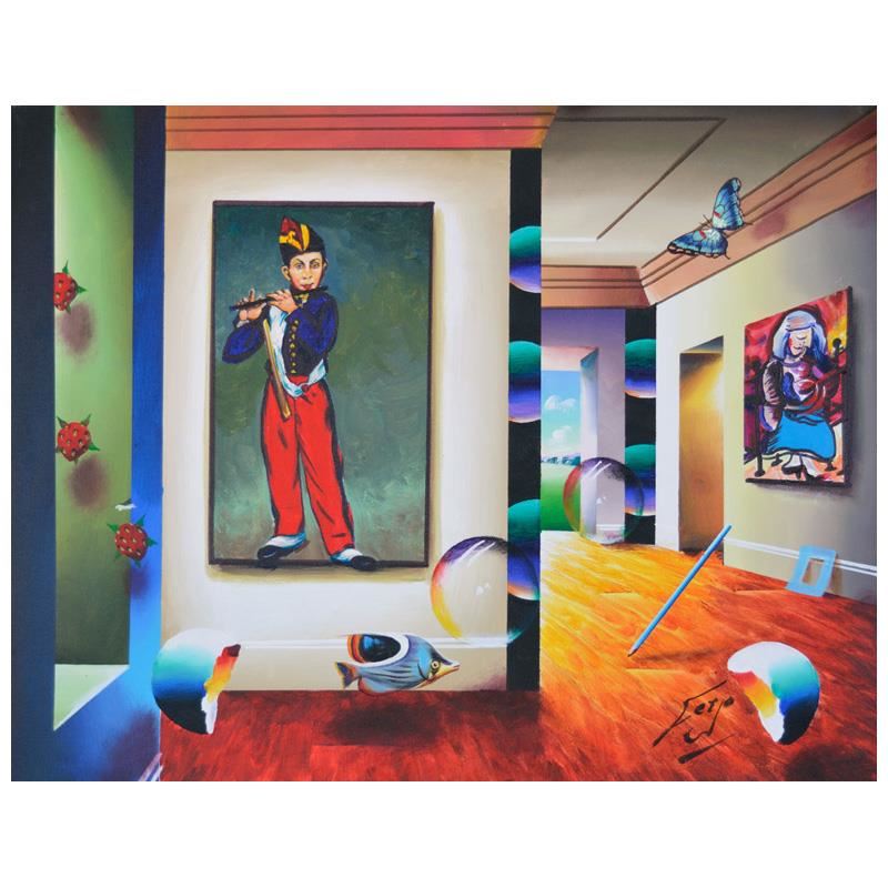 "The Piper with Picasso" is an original painting, oil on stretched canvas, by Ferjo. Hand signed by the artist, this piece comes with a letter of authenticity. Measures approx. 22" x 28" (image).
