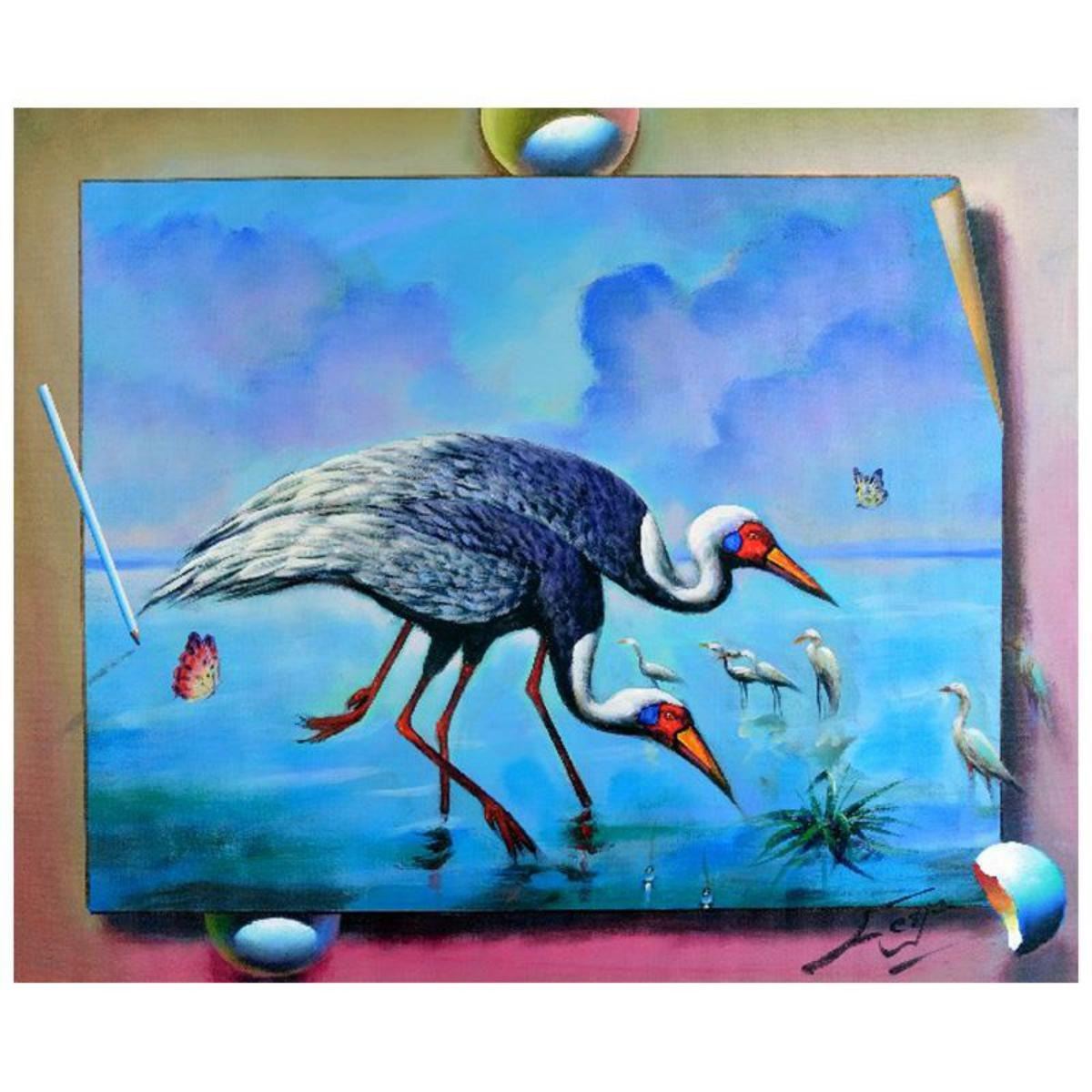 Ferjo, "Wading Birds" Original Painting on Canvas, Hand Signed with Letter of Authenticity.