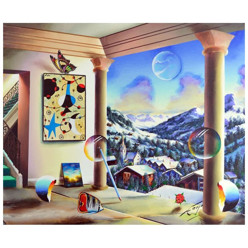 "Winter Wonderland" is an original painting, oil on stretched canvas by Ferjo. Hand signed by the artist, this piece comes with a letter of authenticity. Measures approx. 20" x 24" (image).