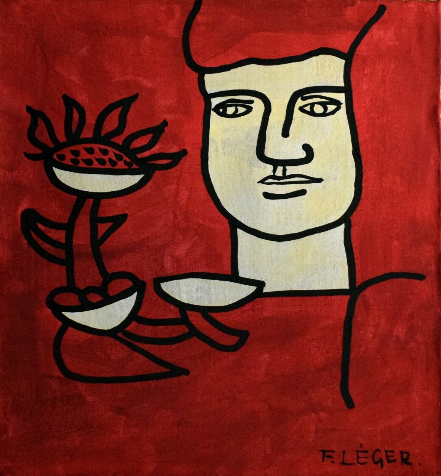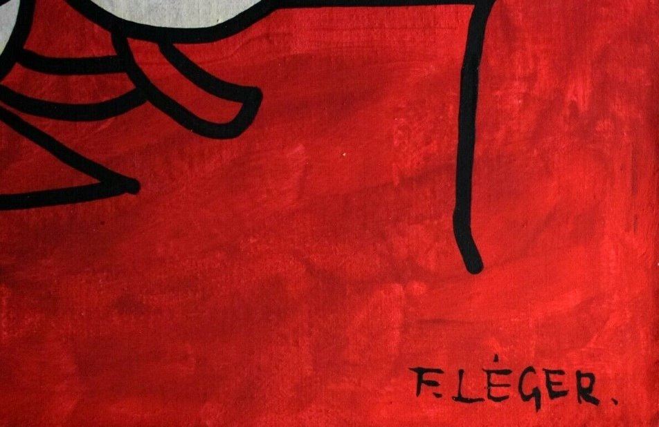 French painter, sculptor, and filmmaker. In his early works he created a personal form of cubism which he gradually modified into a more figurative, populist style. His boldly simplified treatment of modern subject matter has caused him to be regarded as a forerunner of pop art. Fernard Leger's painting on canvas measures approx 18.5x15 inches, is signed, mounted and framed and supplied with coa.