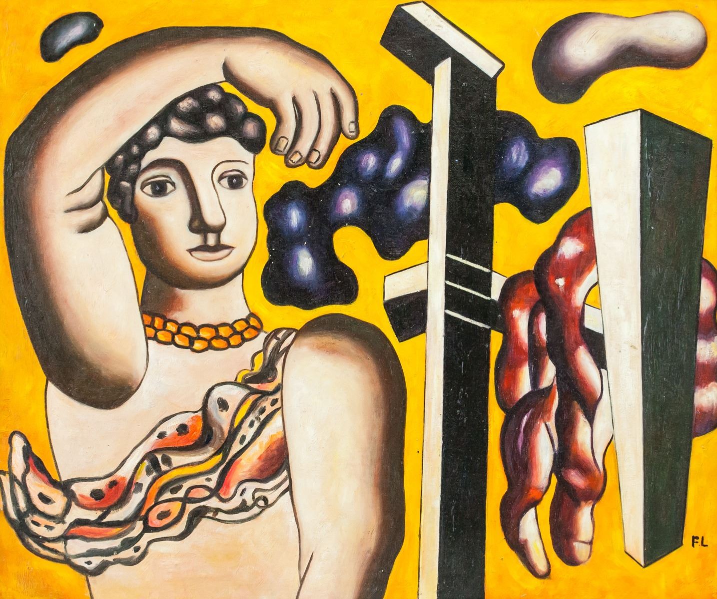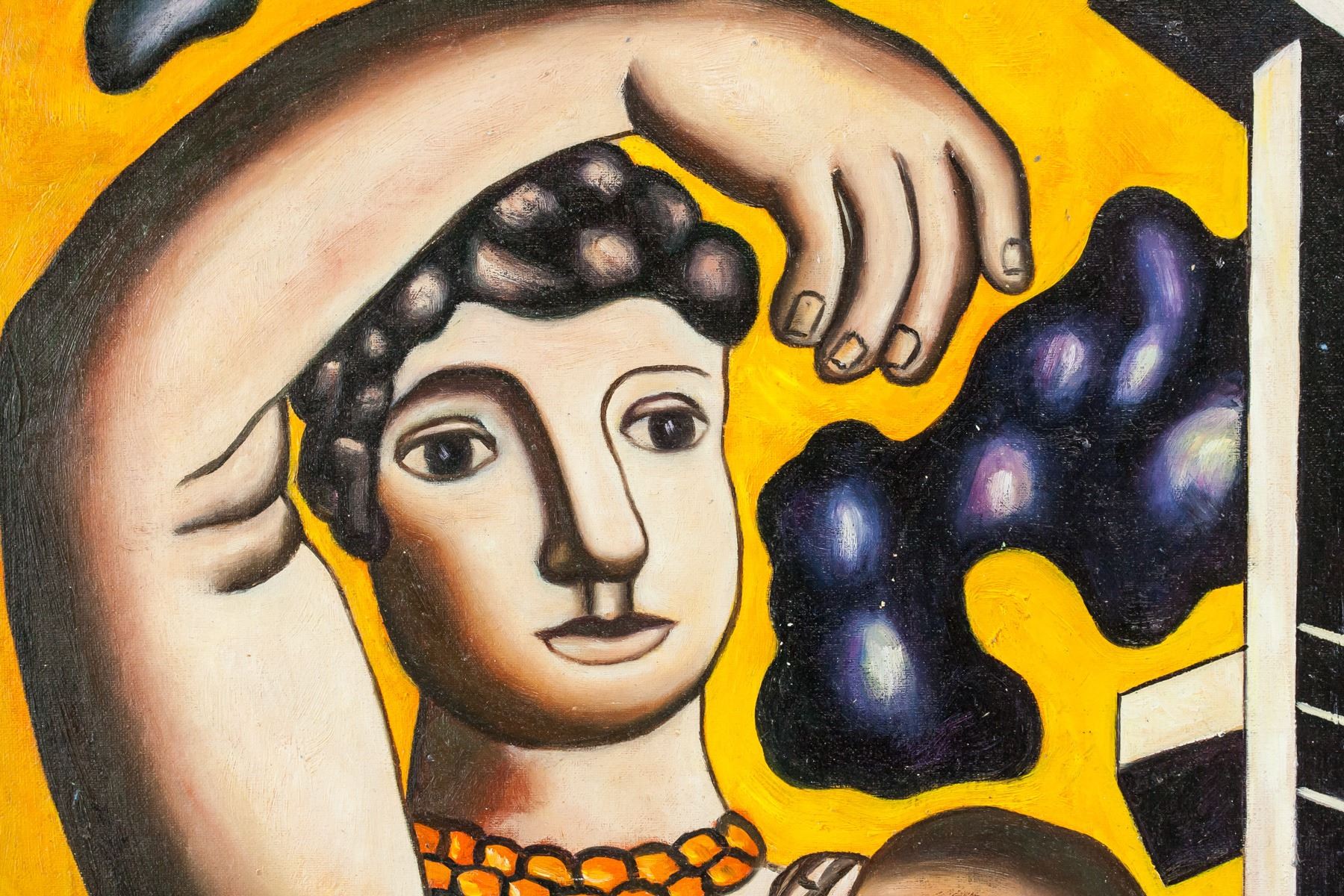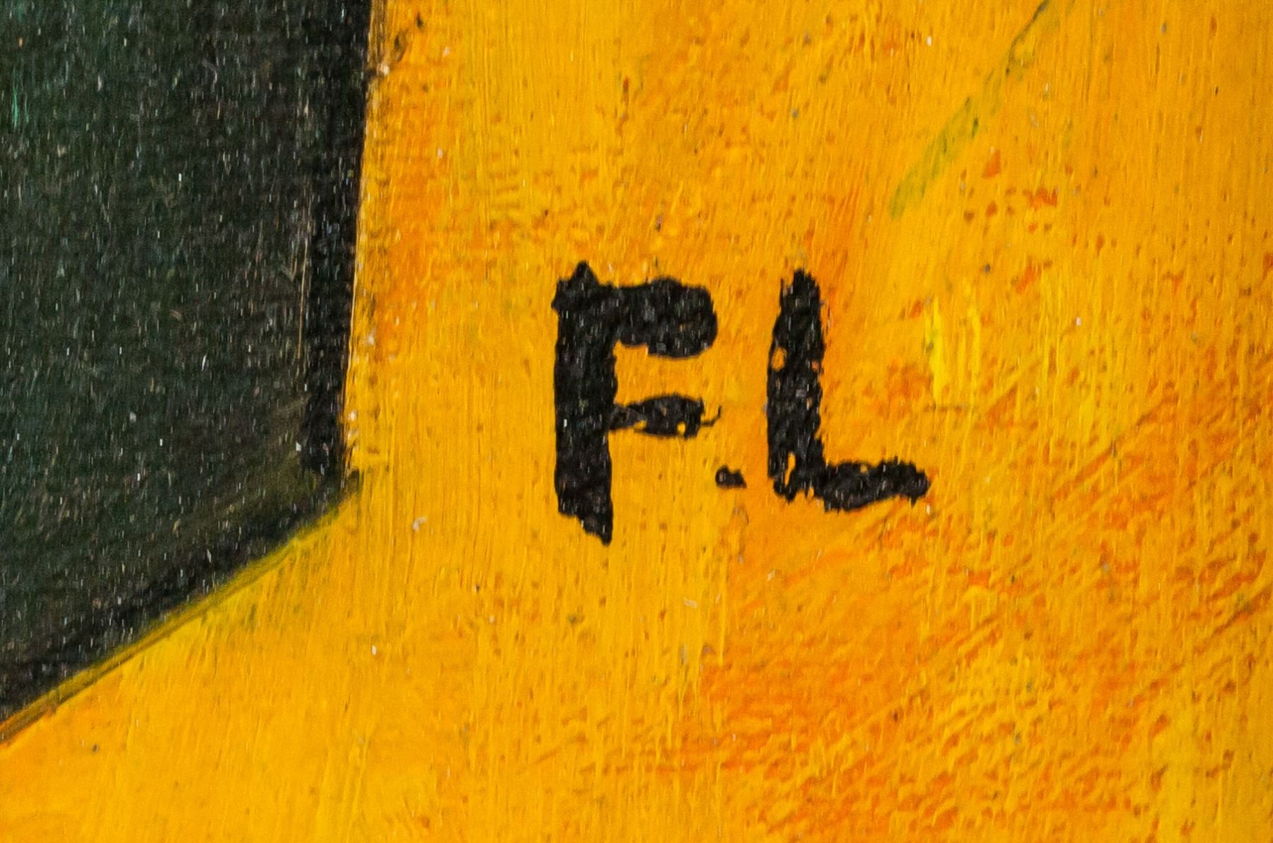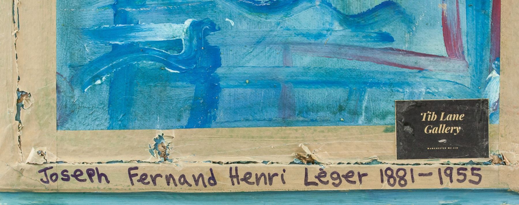 Oil on board, framed. Featuring surrealist composition. Signed "FL" to the bottom right corner. "Joseph Fernand Henri Leger 1881-1955" inscribed on verso. Label on verso reads "Tib Lane Gallery". Attributed to Fernand Leger (1881-1955, French). 49 x 59 cm (19.5 x 23.5 inches), framed size: 65 x 75 cm (25.5 x 29.5 inches).