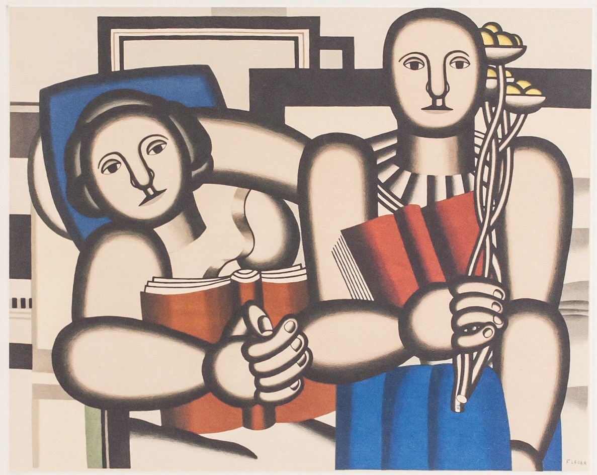 Linocut on paper. Featuring portrait of two figures. Both holding books in their arms. "33/200" inscribed to the bottom left. Signed " F. Leger" to the bottom right. Attributed to Fernand Leger (1881-1955, French). Image size: 15 x 19 cm (6 x 7.5 inches). Sheet size: 21 x 29 cm (8.25 x 11.5 inches). Provenance: This lot carries limited provenance from a Southern Ontario estate