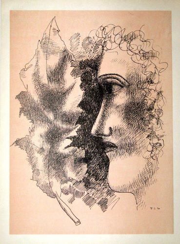 Fernand Leger Lithograph "Tête Et Feuille" - Published In Paris By Teriade For Verve (Volume 1, Number 5-6), In 1939. Verve Was Founded In 1937 To Showcase Original Lithographs By The Leading Artists Of The Day, With Outstanding Technical Quality. Size: 10 1/4 X 14 Inches (Sheet) - Professionally Framed & Matted - Comes With Certificate - -