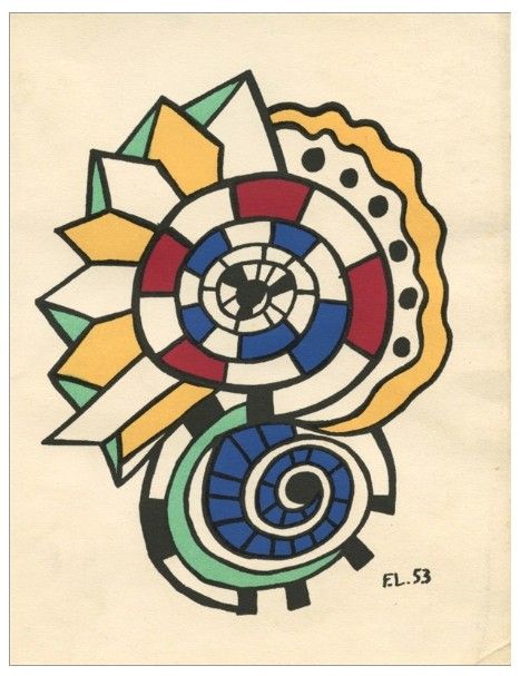 Fernand Leger lithograph, 1953 - Medium: lithograph (after the gouache). Executed by Leger in 1953 and printed in Paris by Mourlot in 1956 for the cover of an exhibition catalogue. Size: 8 x 6 inches (203 x 155mm) on wove paper. -Professionally Framed & Matted - Comes With Certificate - -