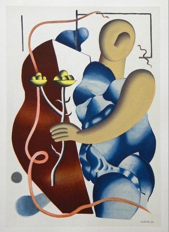 Fernand Leger lithograph "Femme tenant une fleur" | Cubist Art - Medium: lithograph (after the Fernand Leger painting). This classic Cubist composition was printed in 1955 for Derriere le Miroir no. 79-80-81, published in Paris by the Maeght atelier. The total sheet (including margins) measures 15 x 11 inches (380 x 280mm) - Professionally Framed & Matted - Comes With Certificate - -