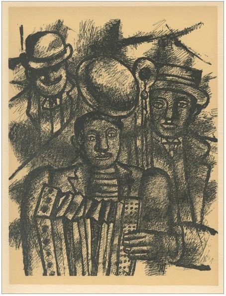 Fernand Leger lithograph "Les musiciens" edition of 1000 - Medium: lithograph (after the drawing). Printed in 1952 by Mourlot Frères on Arches paper and published in Paris by Louis Carre in an edition of 1000 for the "La Figure dans L'Oeuvre de Leger" exhibition. The total sheet size (including margins) is 10 1/2 x 7 1/2 inches (265 x 190mm) - Professionally Framed & Matted - Comes With Certificate - -