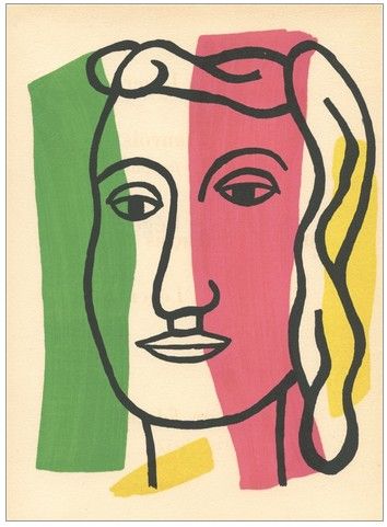 Fernand Leger lithograph "Visage" edition of 1000 - Medium: lithograph (after the painting). Printed in 1952 by Mourlot Frères on Arches paper and published in Paris by Louis Carre in an edition of 1000 for the "La Figure dans L'Oeuvre de Leger" exhibition. The total sheet size (including margins) is 10 1/2 x 7 1/2 inches (265 x 190mm) - Professionally Framed & Matted - Comes With Certificate - -