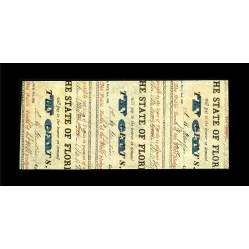 <B>Fernandina, FL- Bank of Commerce</B></I> $20 G6b Freeman 3<BR> Unlike many examples from this bank, this piece is not reconstructed but instead was cut from a sheet of State of Florida 10¢ notes, which were printed on the plain backs of these remainder sheets during the Civil War. <B>Uncirculated,</B></I> with a colorful red brown overprint. <BR><BR><b>Shipping:</b> Coins & Currency (<a target="_blank" href="http://www.heritageauctions.com/common/shipping.php">view shipping information</a>)